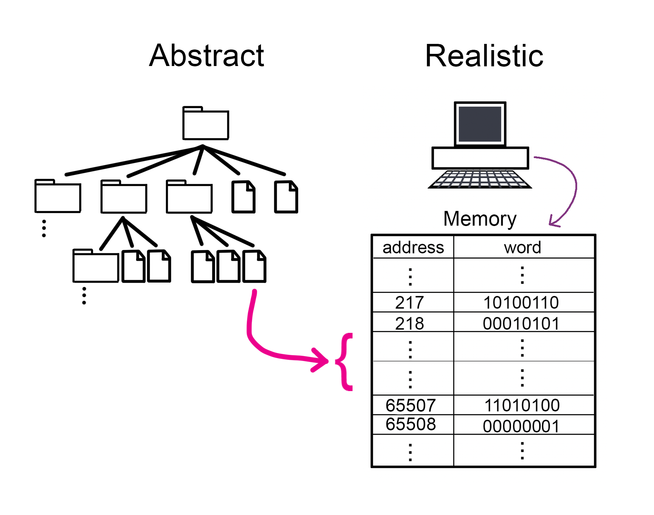 We have an abstract idea of how data is stored, which is in a collection of files and folders in a complex tree structure.