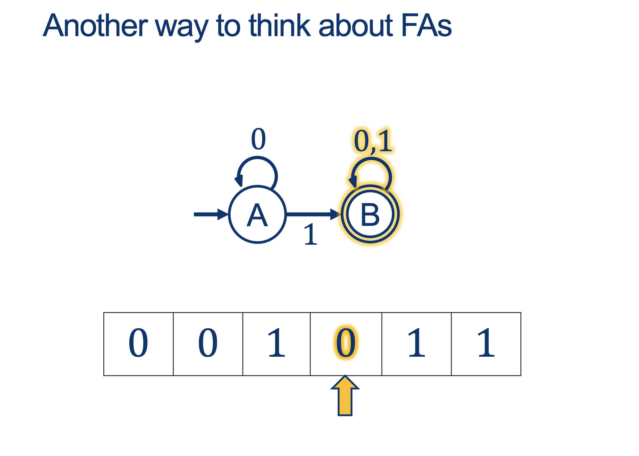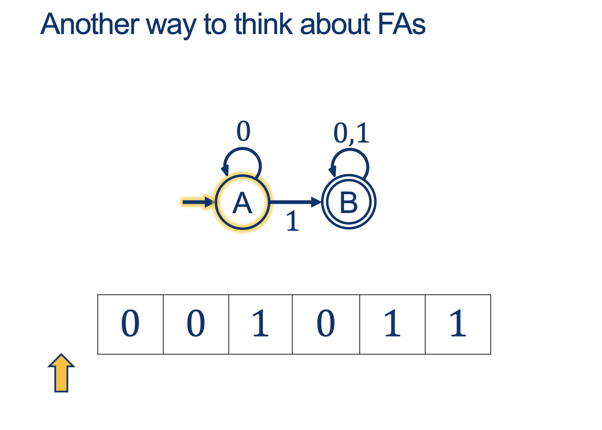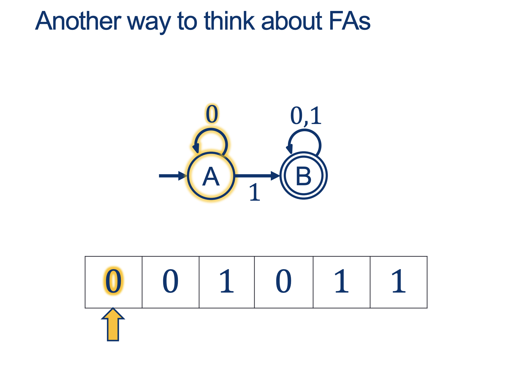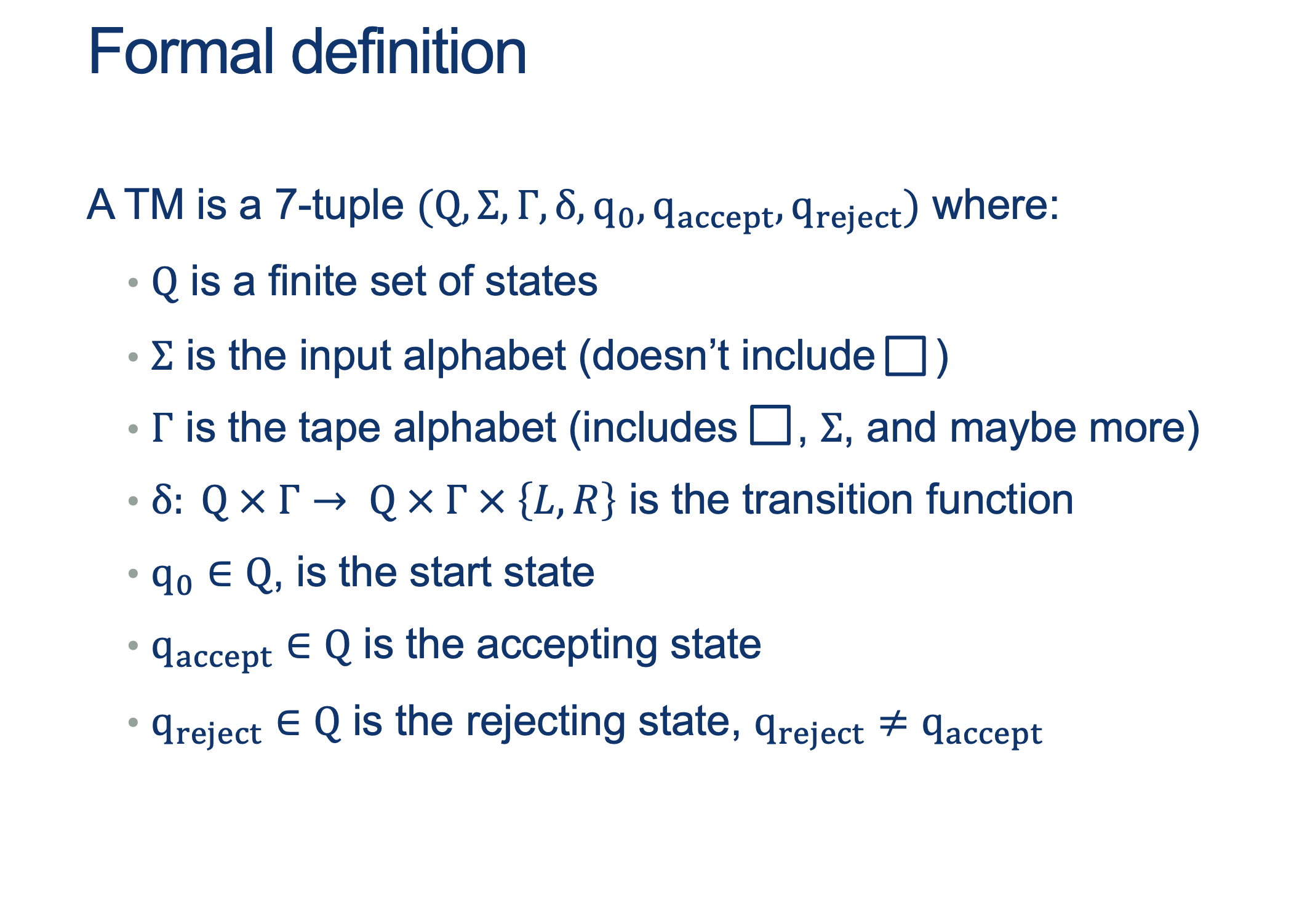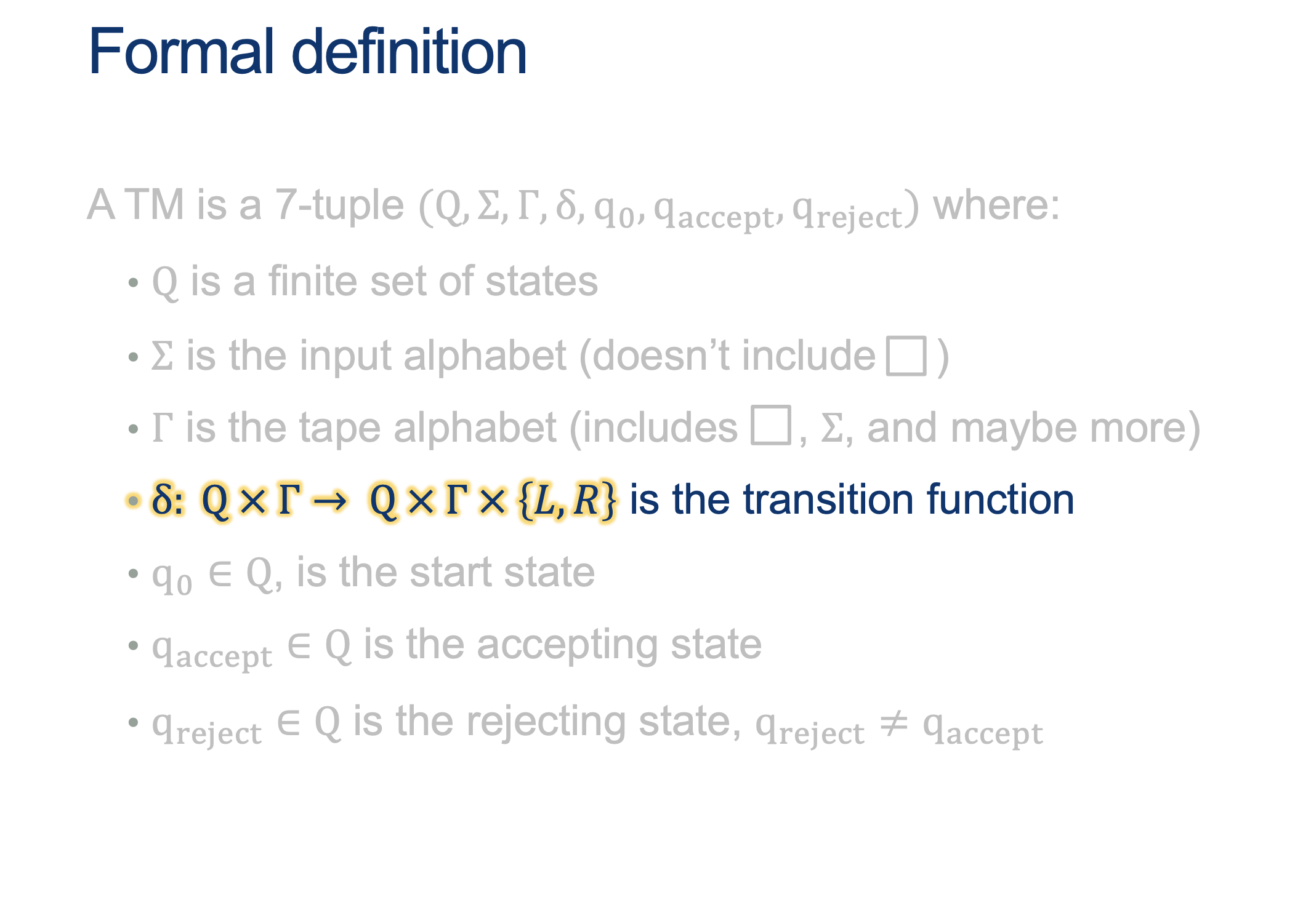 - (0, $\square$, L): IF we read a 0, we write a “blank” and move Left