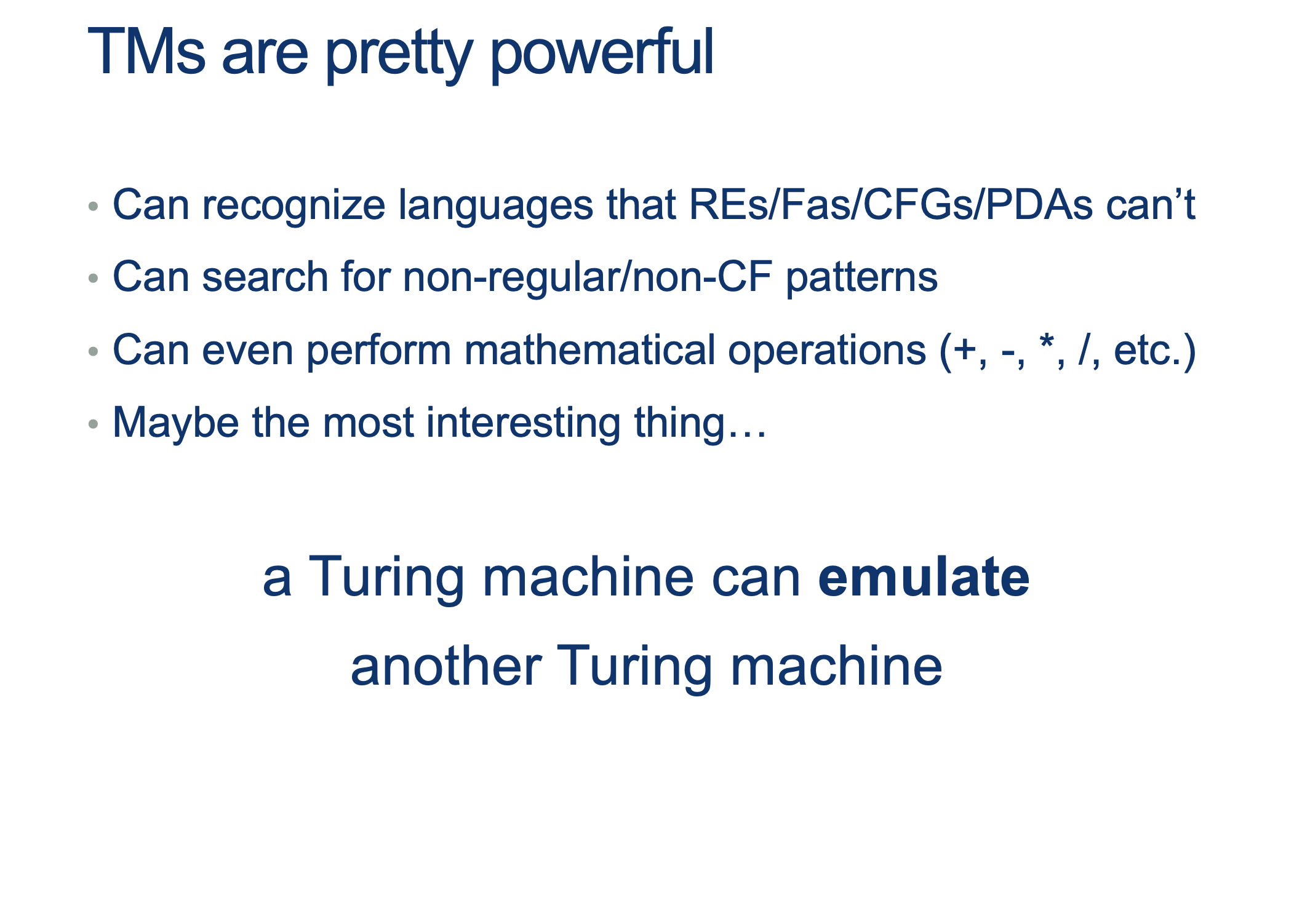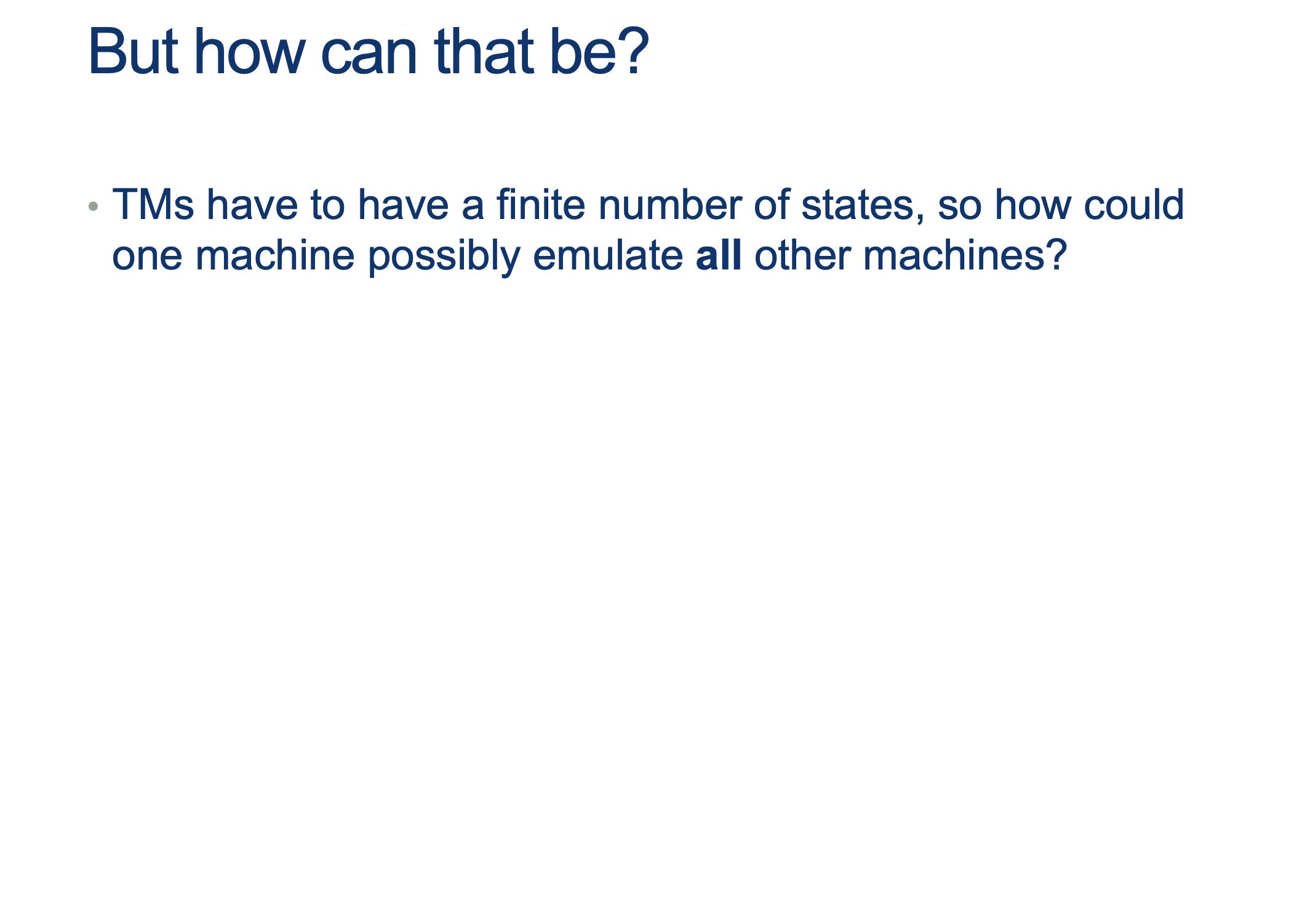 In other words, TM $U$ can emulate other turing machines $M$ for some input $w$