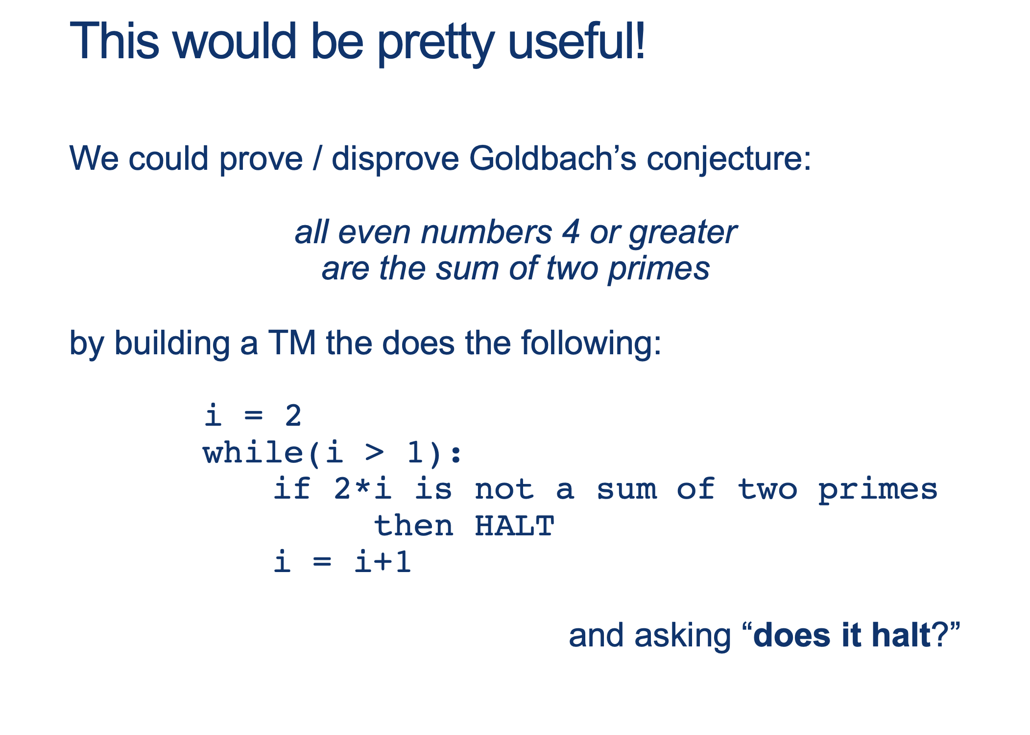 - Therefore, the initial assumption that halts is a total computable function must be false.