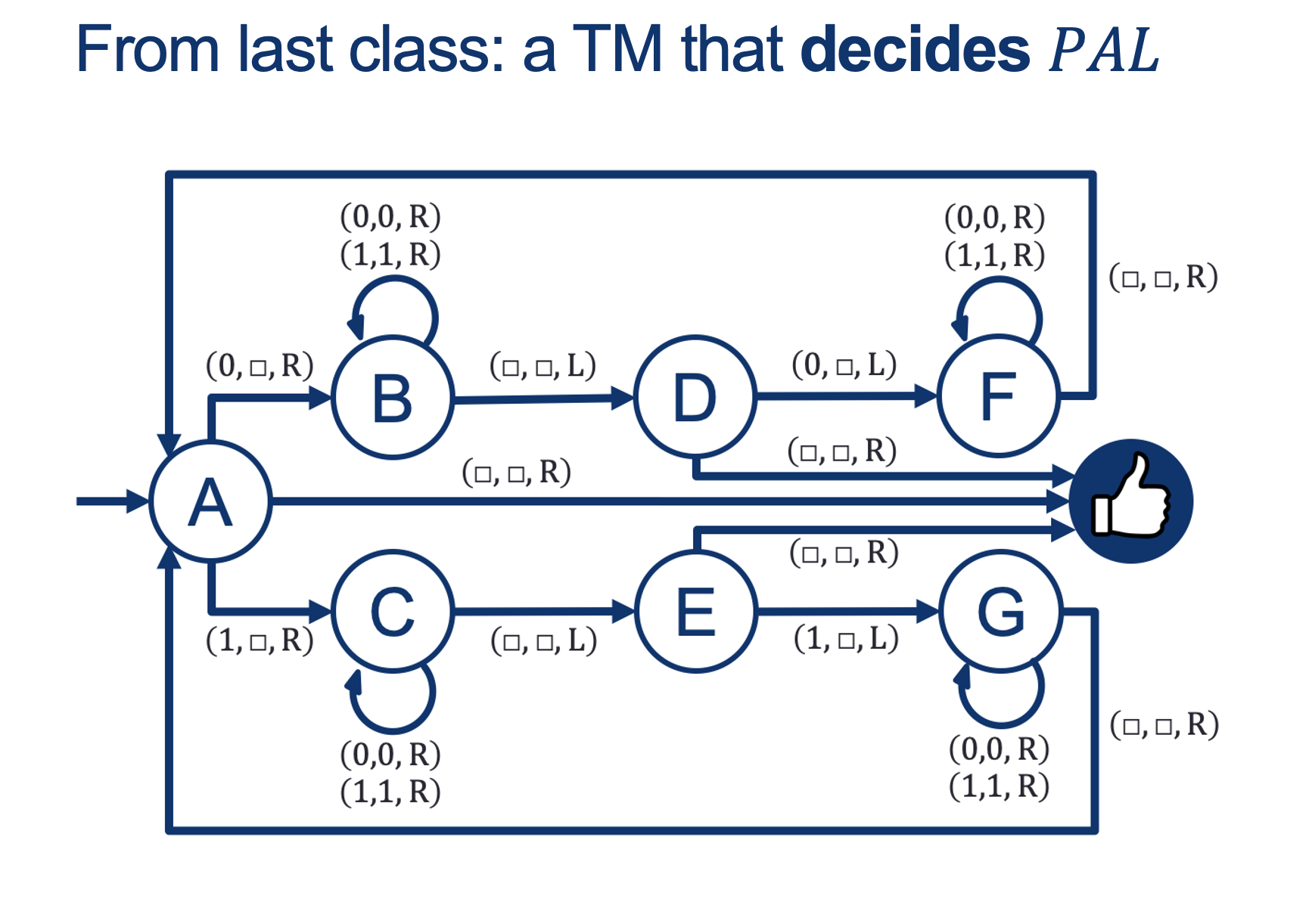 - Formally, can do this by interchanging $q_{acc}$ and $ q_{rej}$