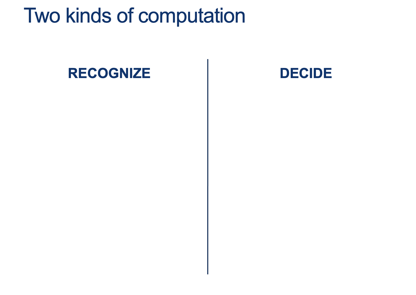 Recognizing vs Deciding