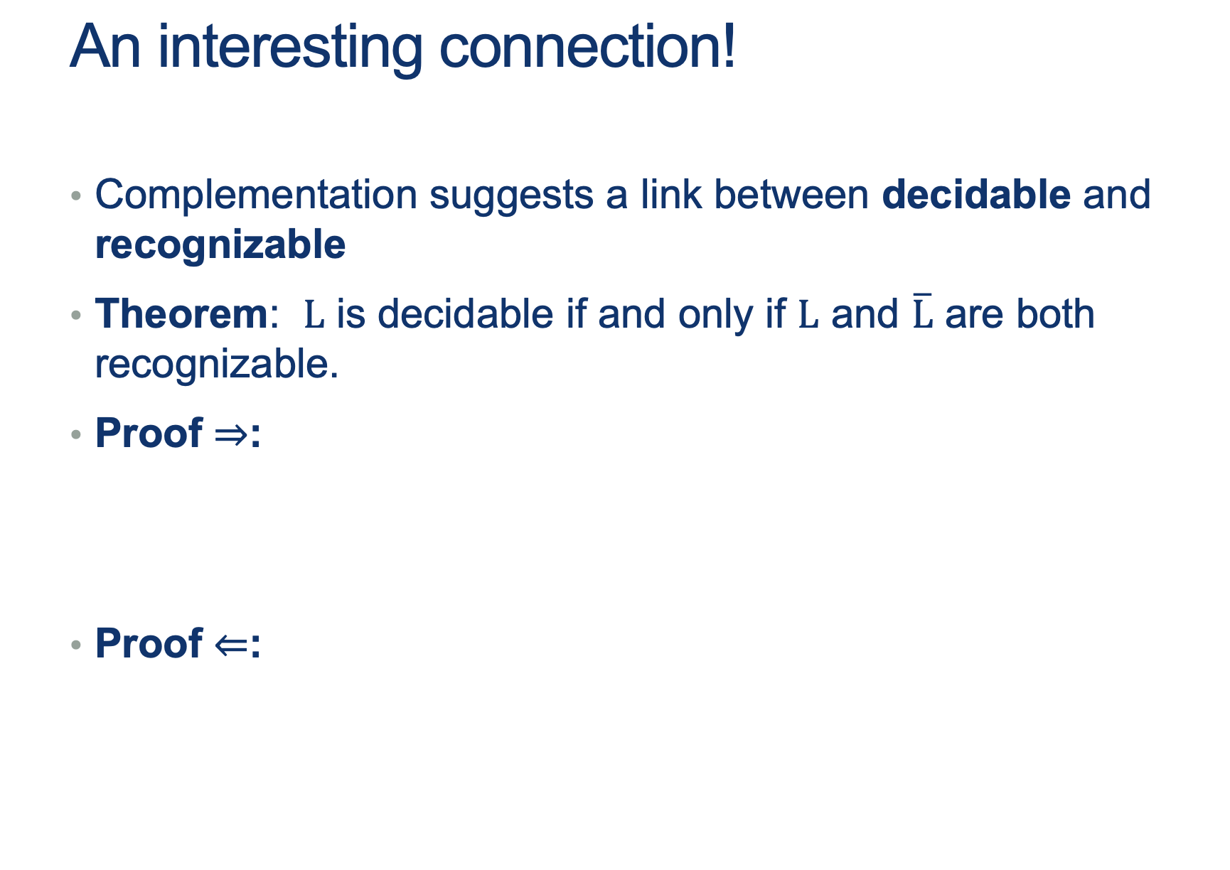 - Then $M^{\prime}$ decides $L^c$
