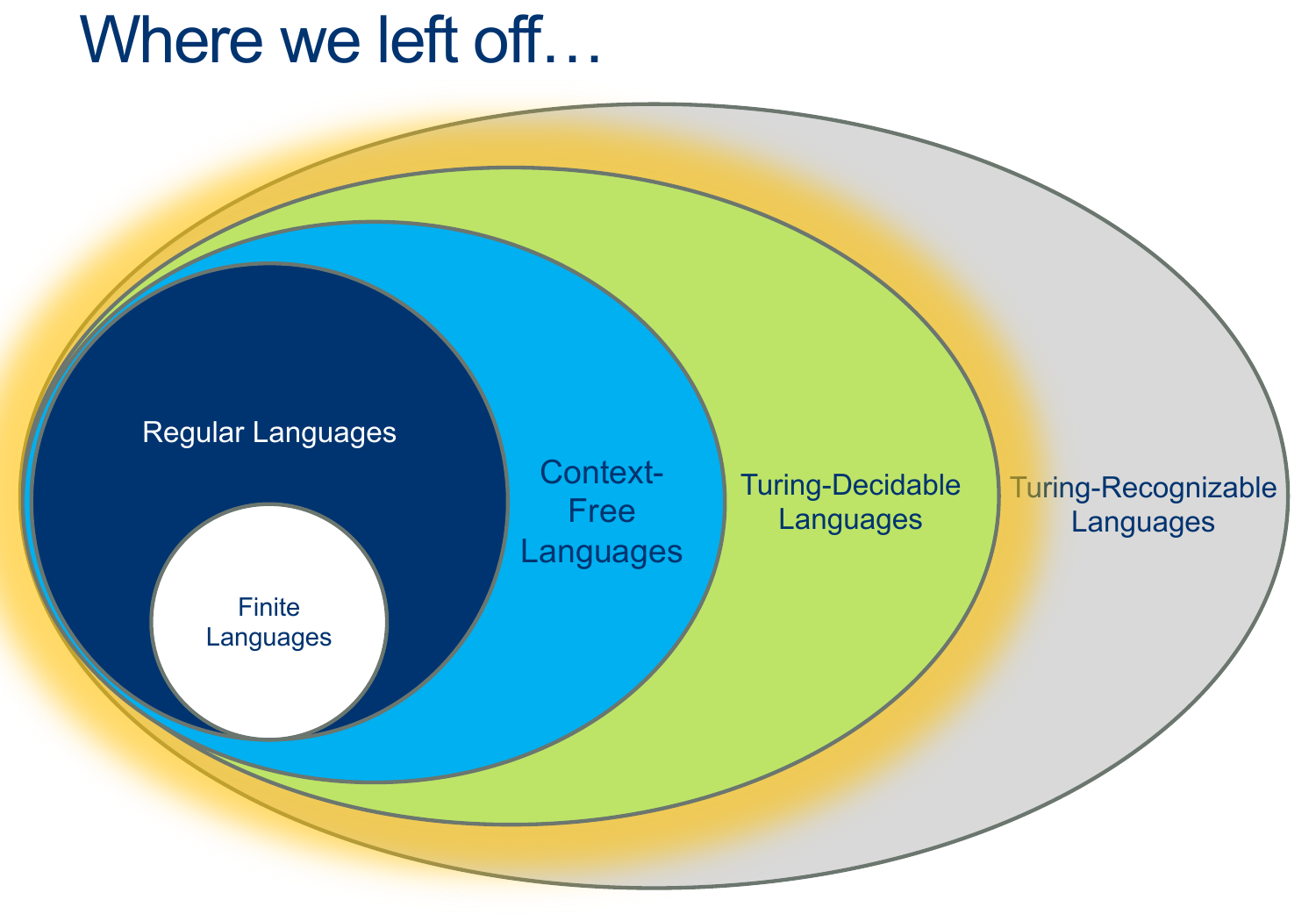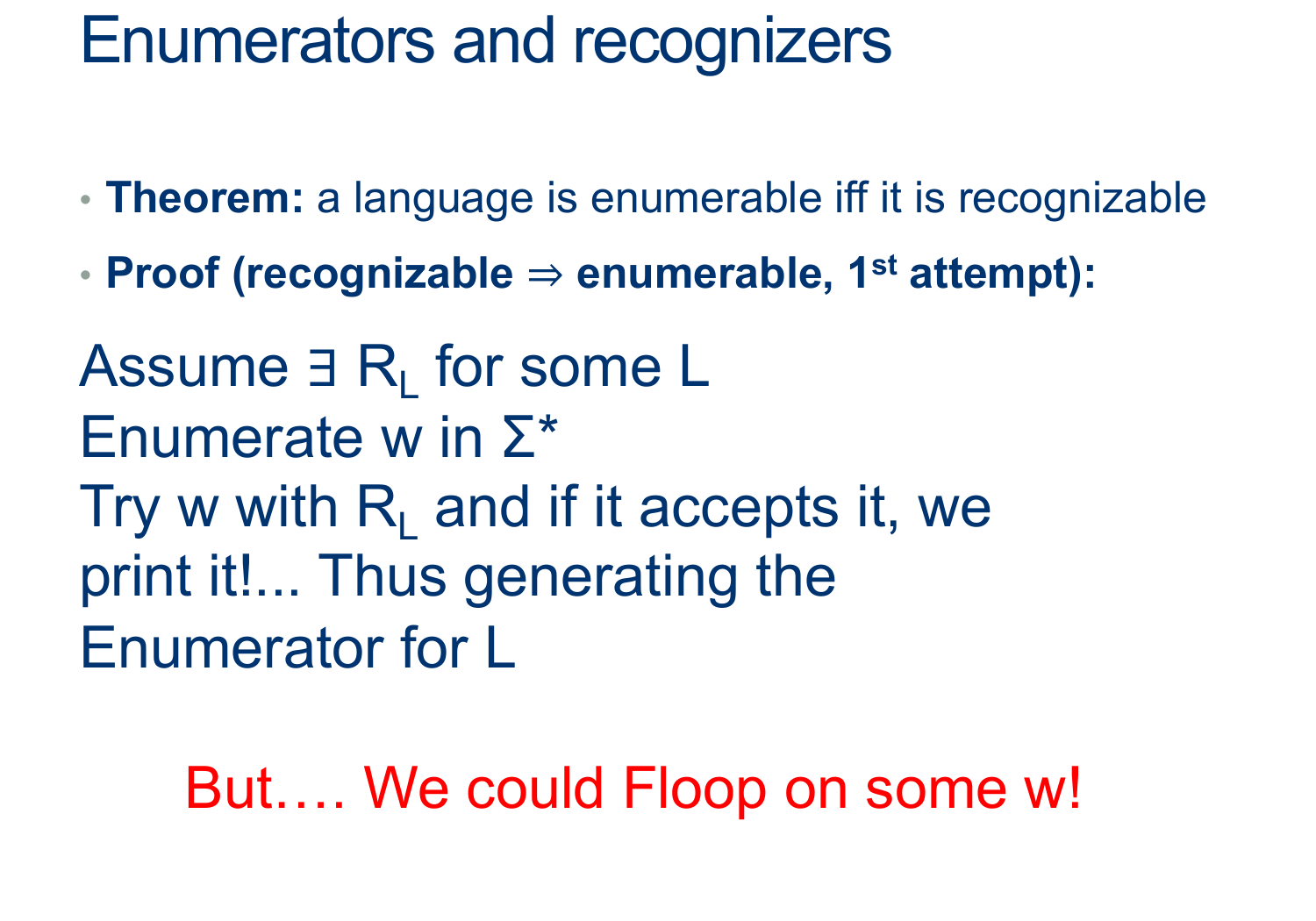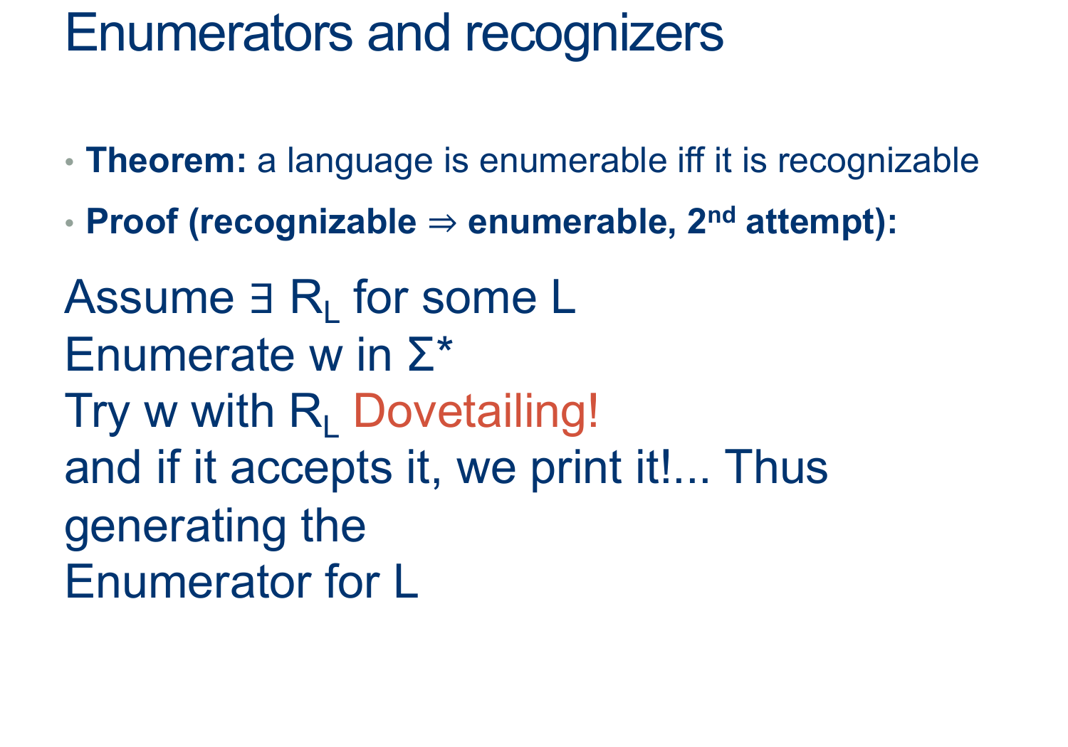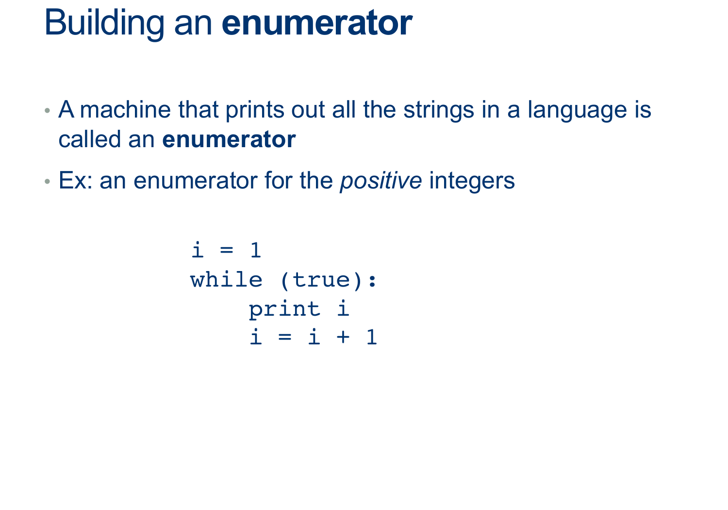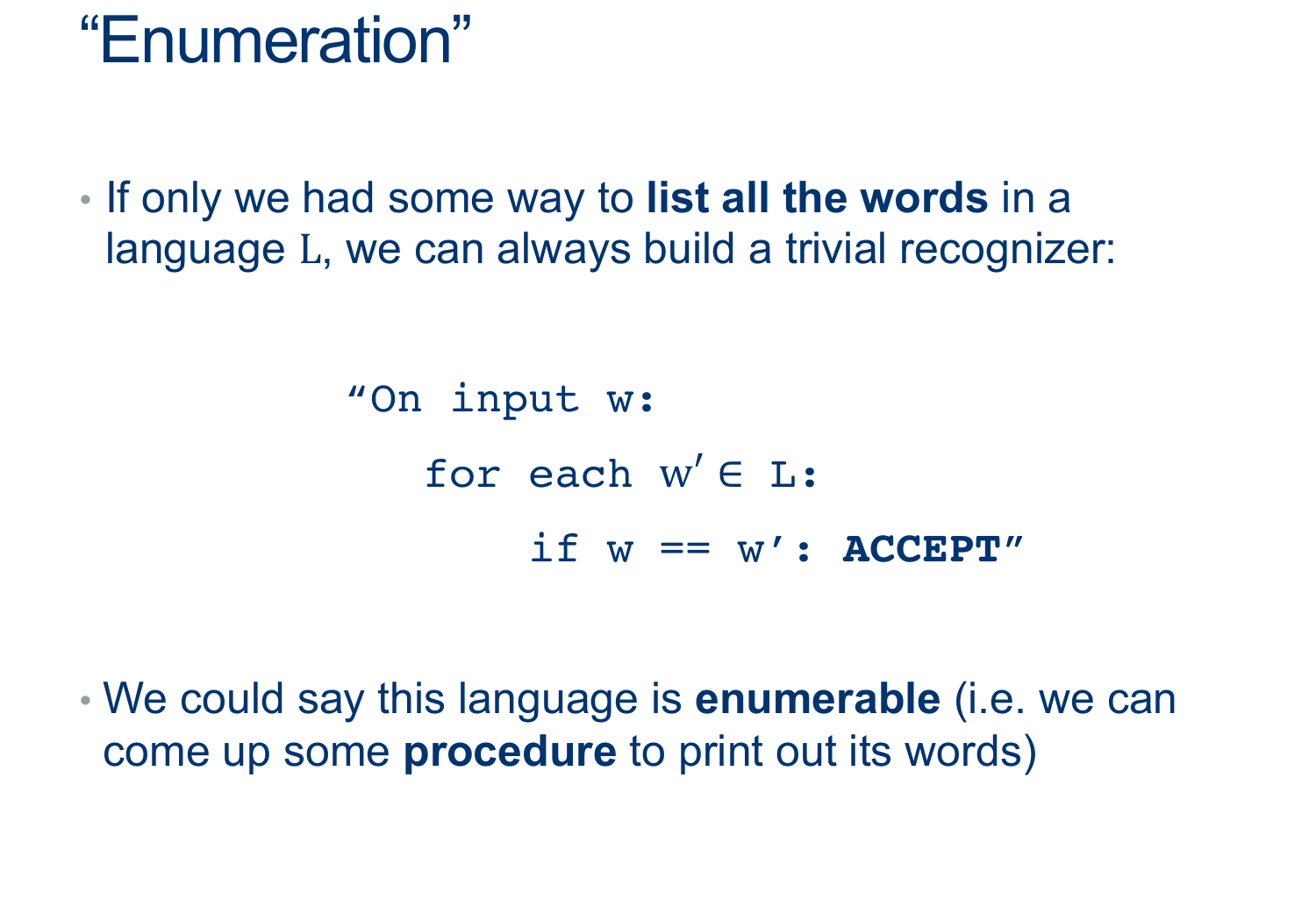 This machine accepts only words that are in L, and if a word is in L we’re guaranteed to reach it at some point (though it might take awhile).