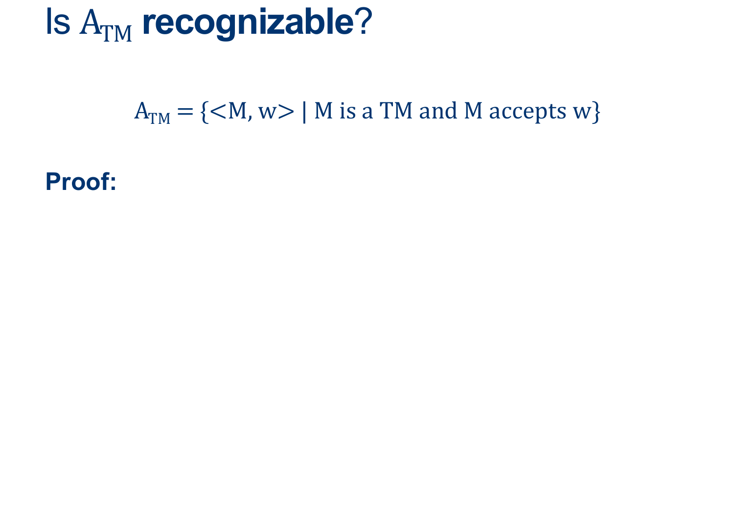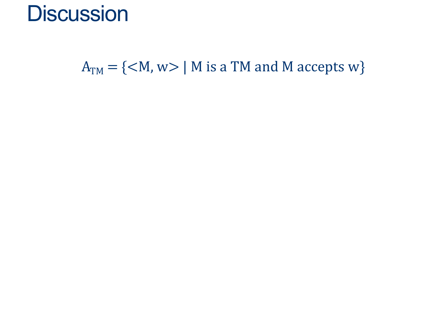 \[A_{TM} = \{ < M, w> | \text{TM $M$ accepts } w \}\](Wait; then Click)