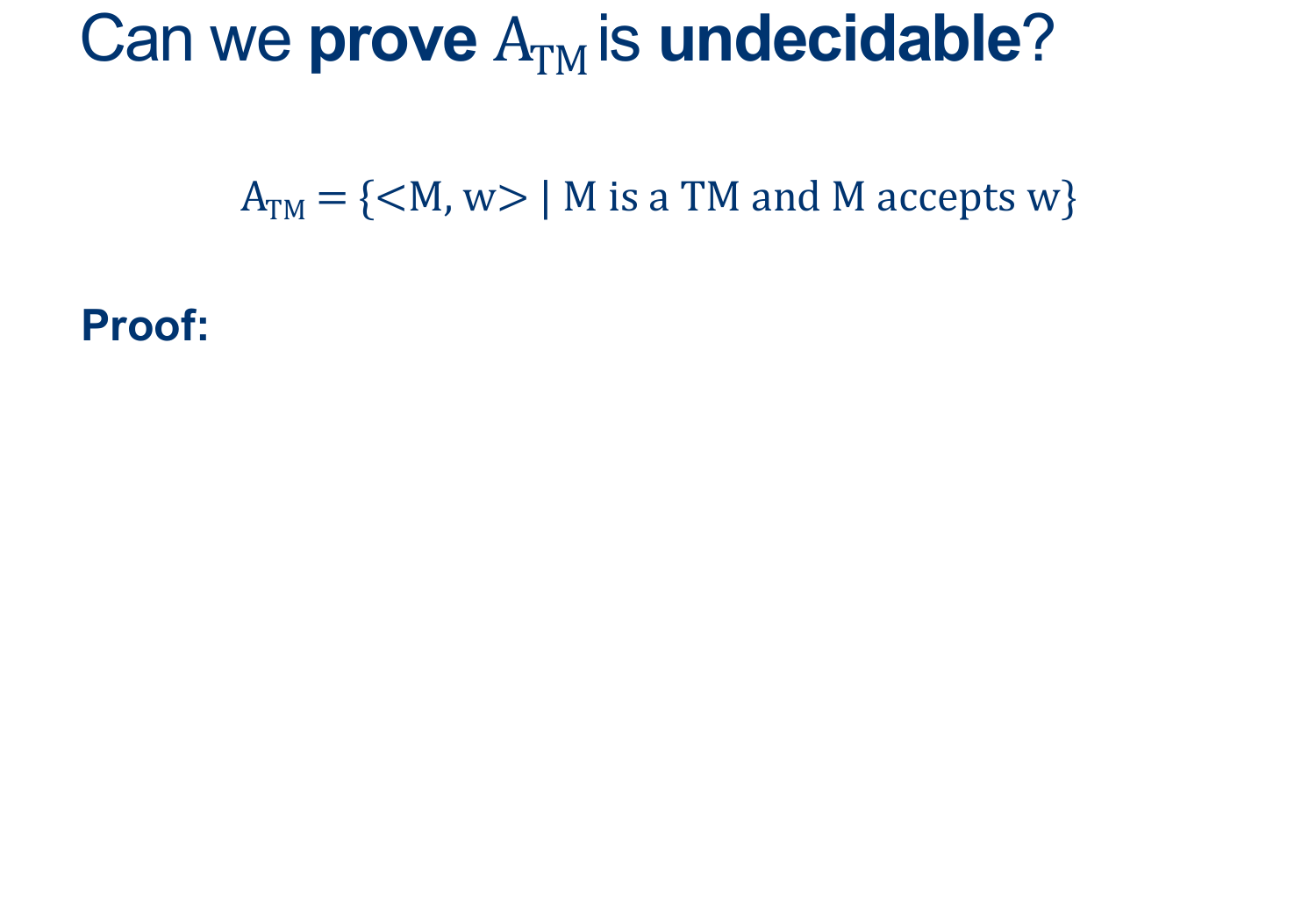 Step 1: Assume Is ATM is Decidable Now try to use this “fact” to arrive at a contradiction