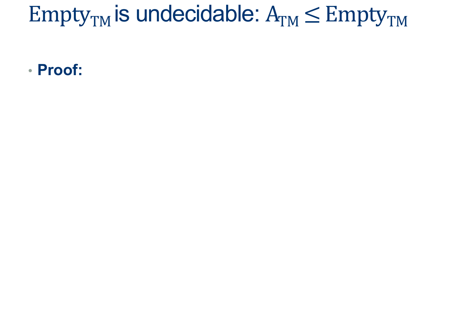 Assume EMPTY-TM is decidable, and so there exists some $D_{EMPTY-TM}$ that decides, for any input $< M >$, whether $L (M) $ is empty.