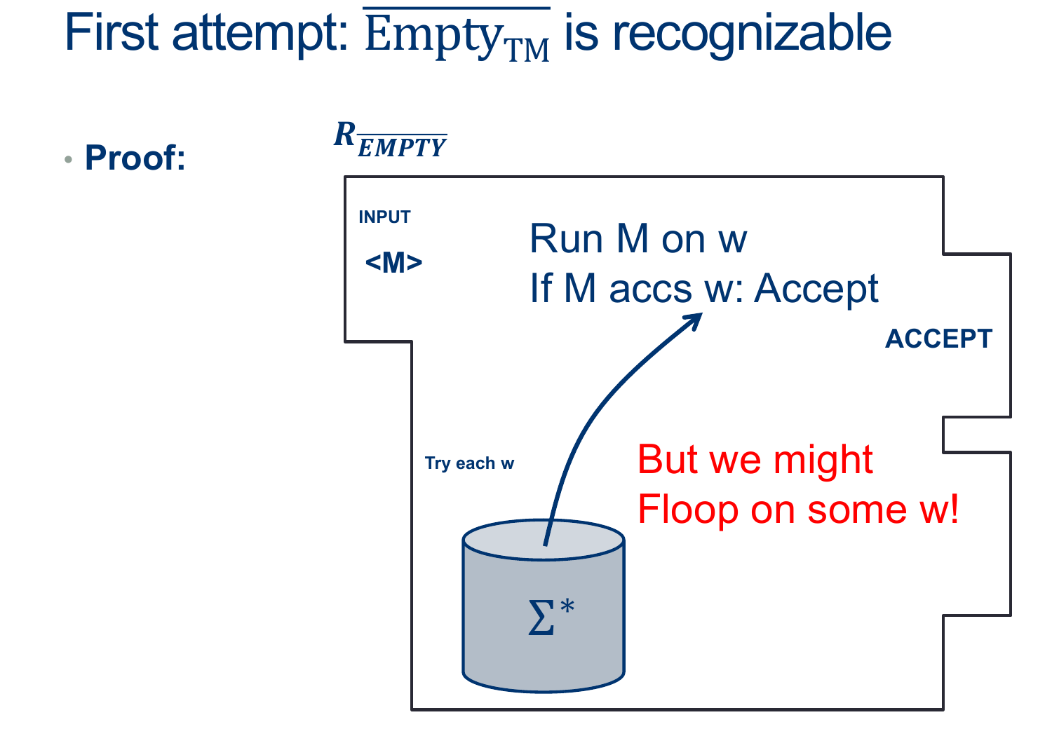 - But we can't prove "we haven't waited long enough" for each input... (AND we have infinite inputs)