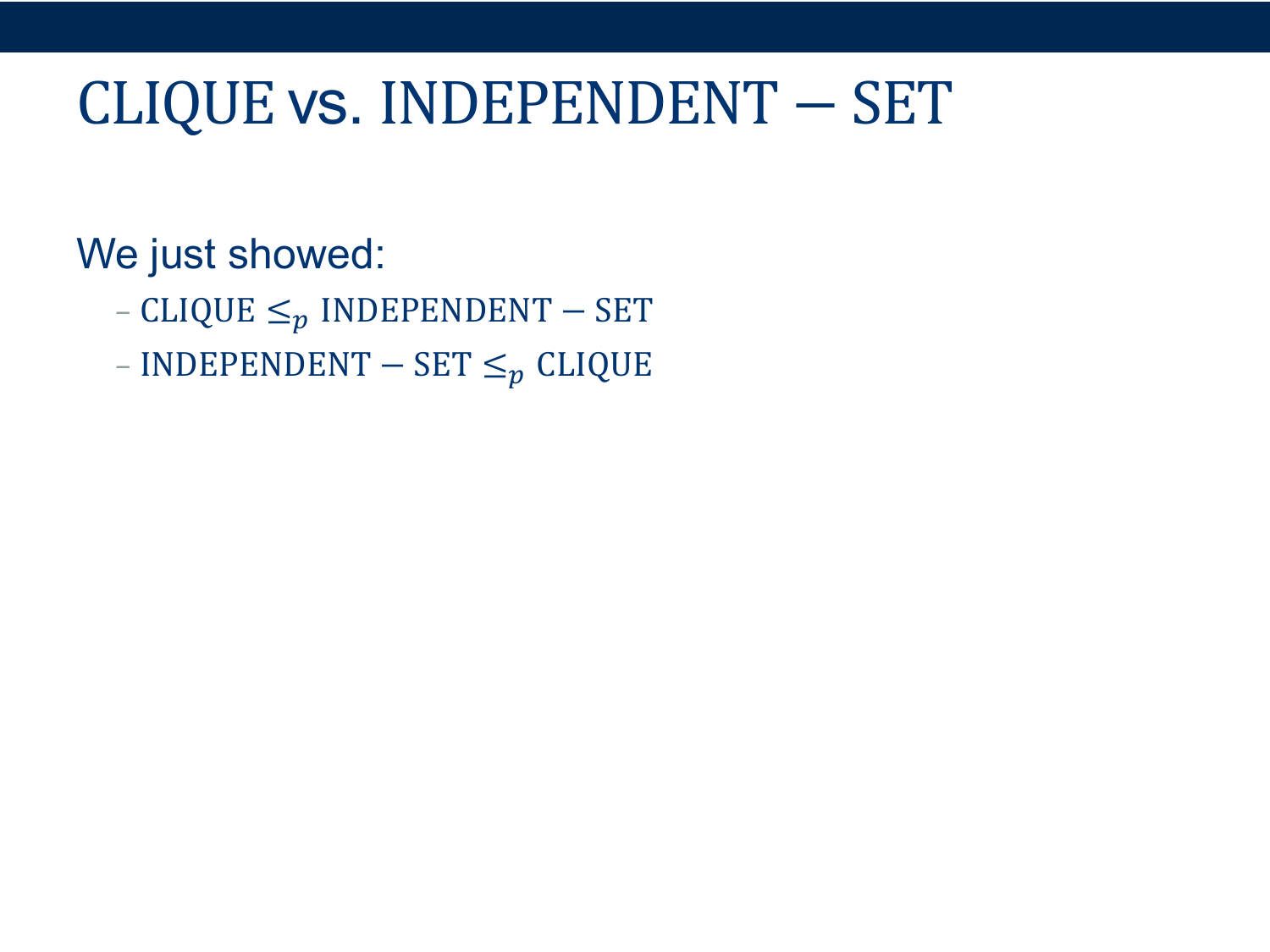 Either both CLIQUE and INDEPENDENT−SET are in 𝒫 or neither is