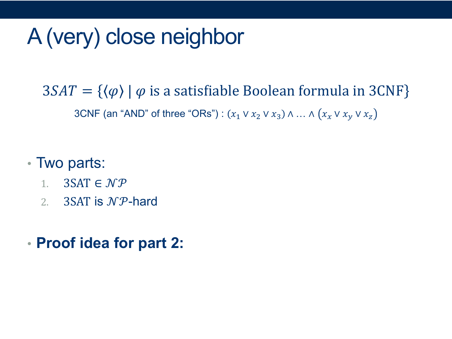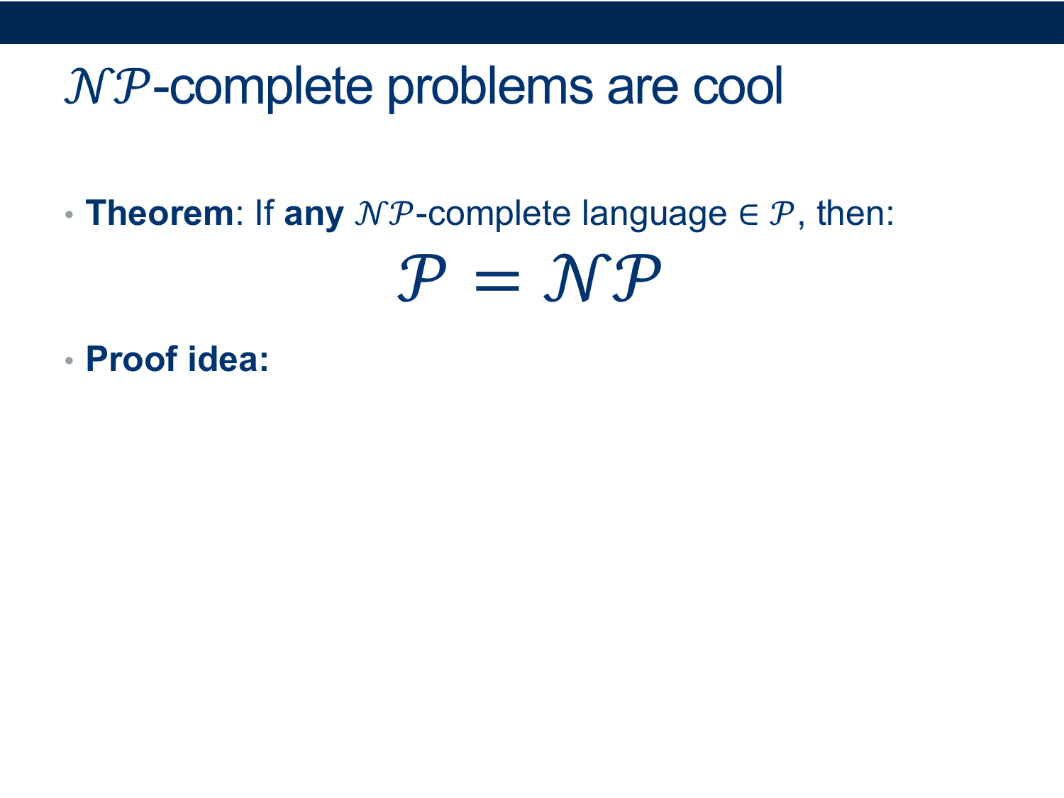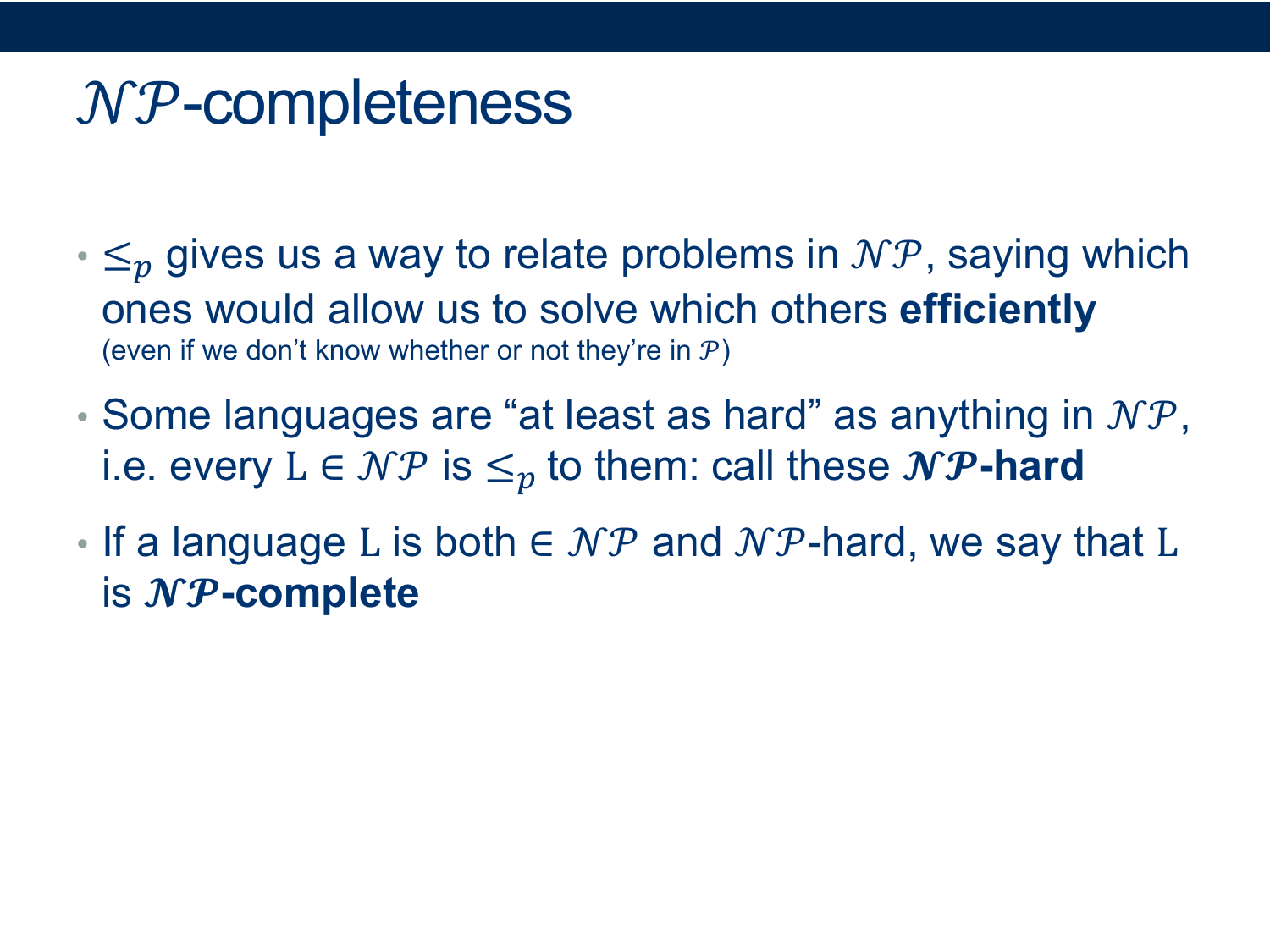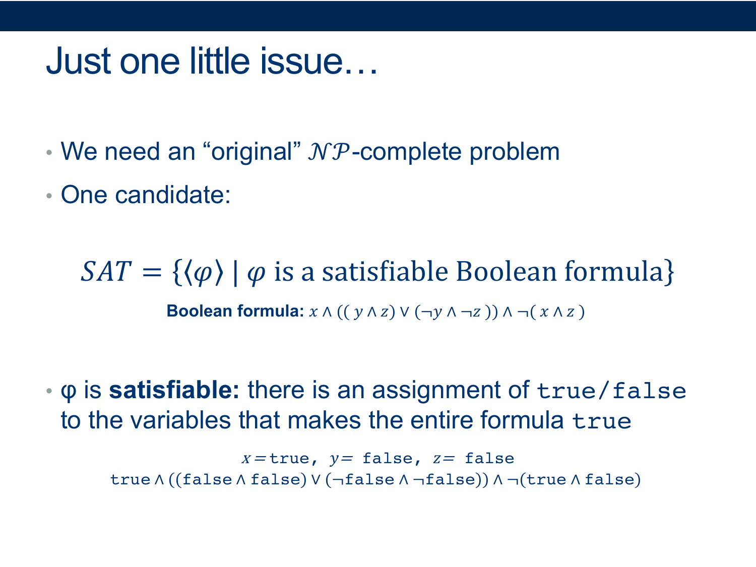 The important takeaway is that if we had some efficient decider for SAT, we’d be able to efficiently decide anything.