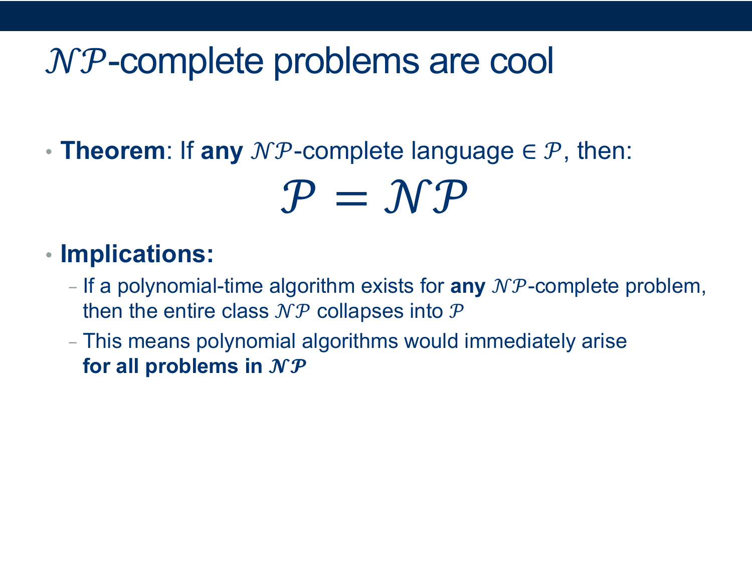 - Since we also know P ⊆ NP, it follows that P = NP.
