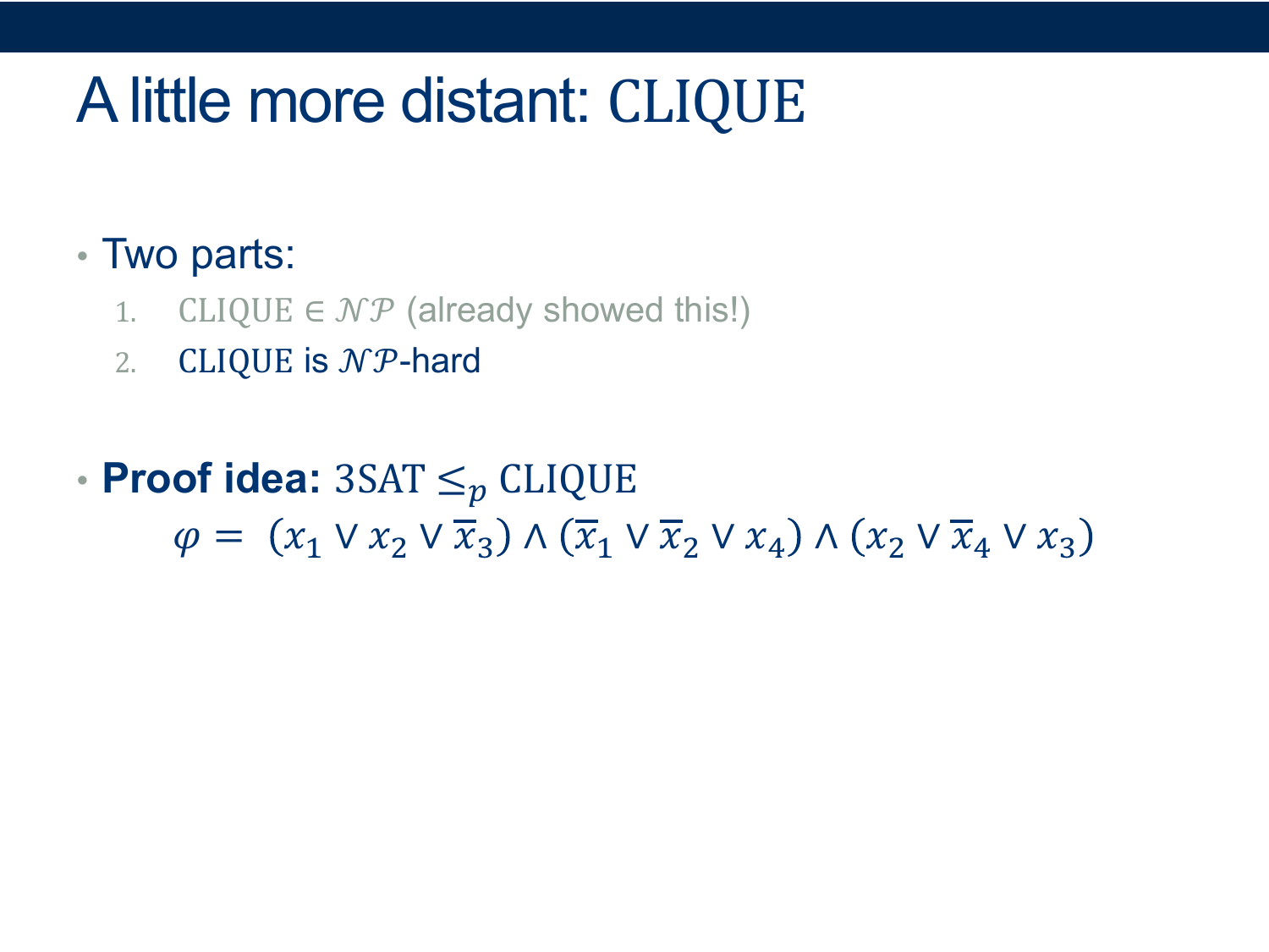 Nondeterminism: we can try multiple “branches” of computation at once The trick: each branch can only take polynomial time Nondeterministically test all subsets of vertices. On each subset: loop over all pairs in the (sub)set and check to make sure there’s an edge between them, and if so: ACCEPT - O(n^2) if no branch accepts REJECT Guaranteed to halt? YES (there’s nowhere to get stuck) What would happen if we tried to serialize all the branches?